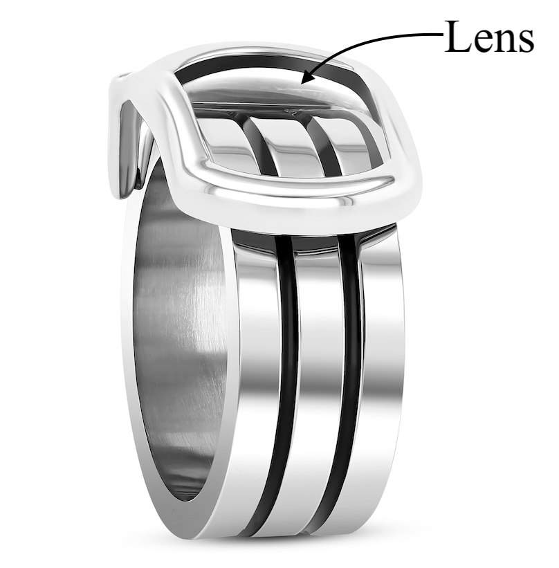 The Optic Ring is a ring equipped with an optical lens allowing the user to read up-close. The Optic Ring can be a more convenient on the go substitute for reading glasses!